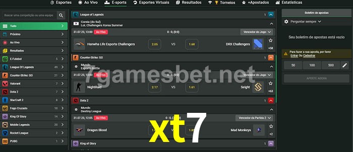 O xt7 oferece uma grande seleção de opções de apostas em e-sports com probabilidades competitivas